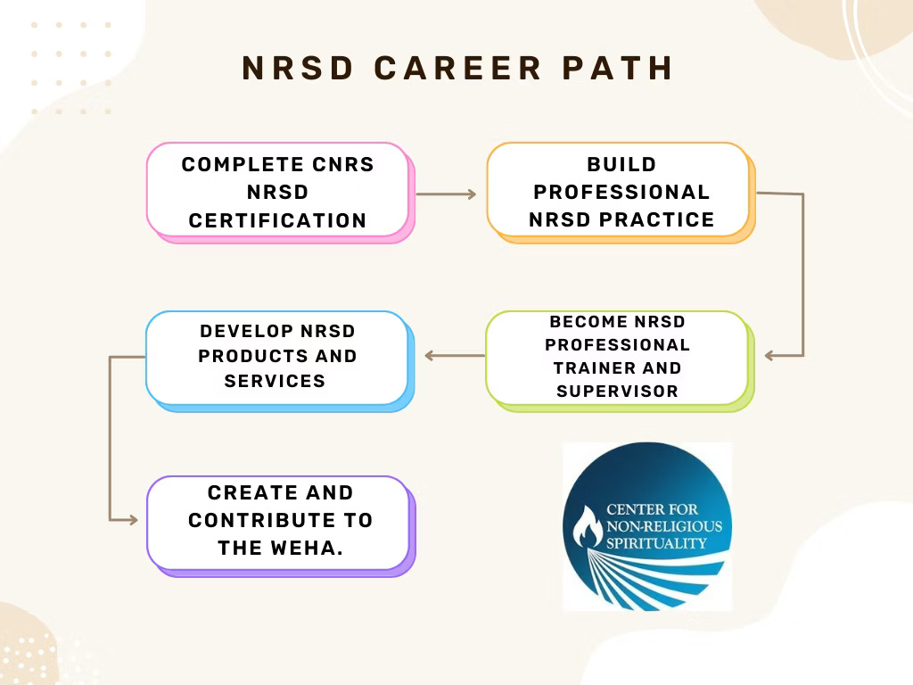 CNRS offers the only training and certification course to become a professional non-religious spiritual director, which is a multidisciplinary training with an emphasis in religious deconstruction, post-religion reconstruction and existential health. There are many career opportunities in non-religious spiritual direction. A certified non‑religious spiritual director can work in: